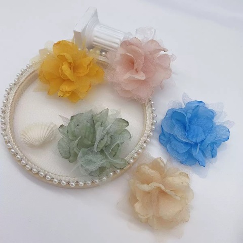 रिल ऑर्गेंज़ा 5 सेमी फूलों का हाथ से बना हुआ ट्रिम फूल के सामान हेडवियर ब्रोच सहायक उपकरण हेडवियर ब्रोच सहायक उपकरण